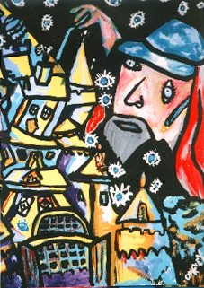 Above: the artist at work Left: the demo castle - used for front of event t-shirt |