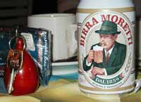 Left: Moretti Beer - doesn't taste all that great but featues a pretty cool mafia guy on the can Monday morning we gathered on the patio for a last cappucino and to say our goodbyes. While most of the other sculptors had planes to catch, I caught a taxi to the Cervia station for the next train to Milan. It was on this leg of my journey that the worst thing to happen on this trip occured -- |