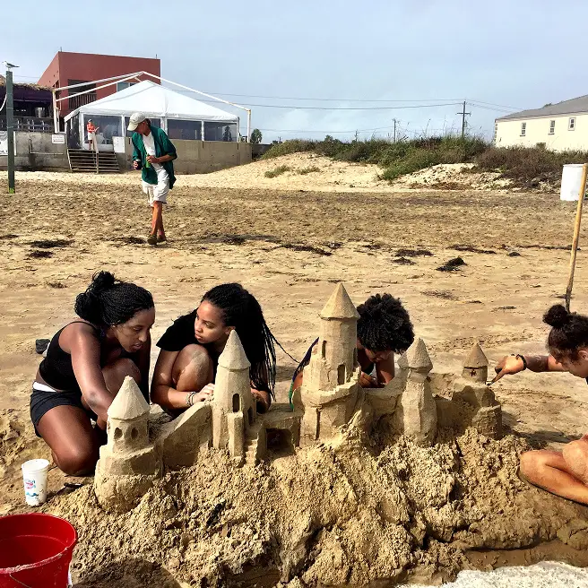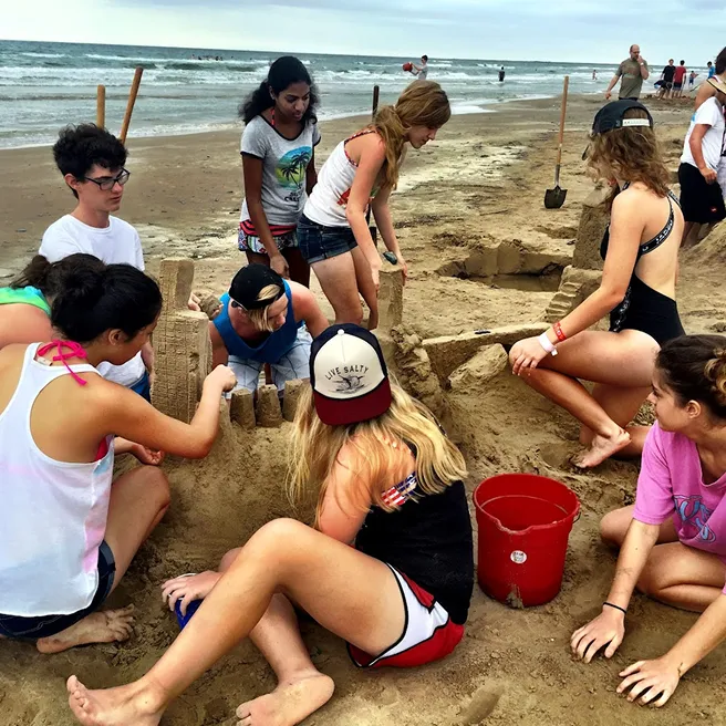 Whether you’re a girl scout troop, a church youth group, corporate conventioneers or just a group of folks who like to hang out together — sandy feet can help you wcrk together or in teams to create big beautiful sand castles and/or beach billboards. We provide equipment, knowhow and enough instructors to work with groups numbering in the hundreds. Who says something as productive as team-building has to be dry and boring? Not us!