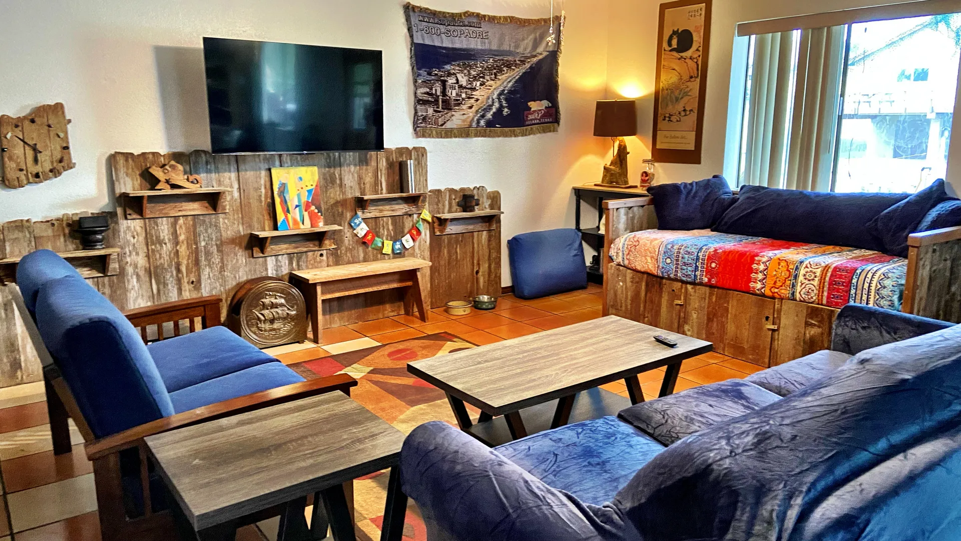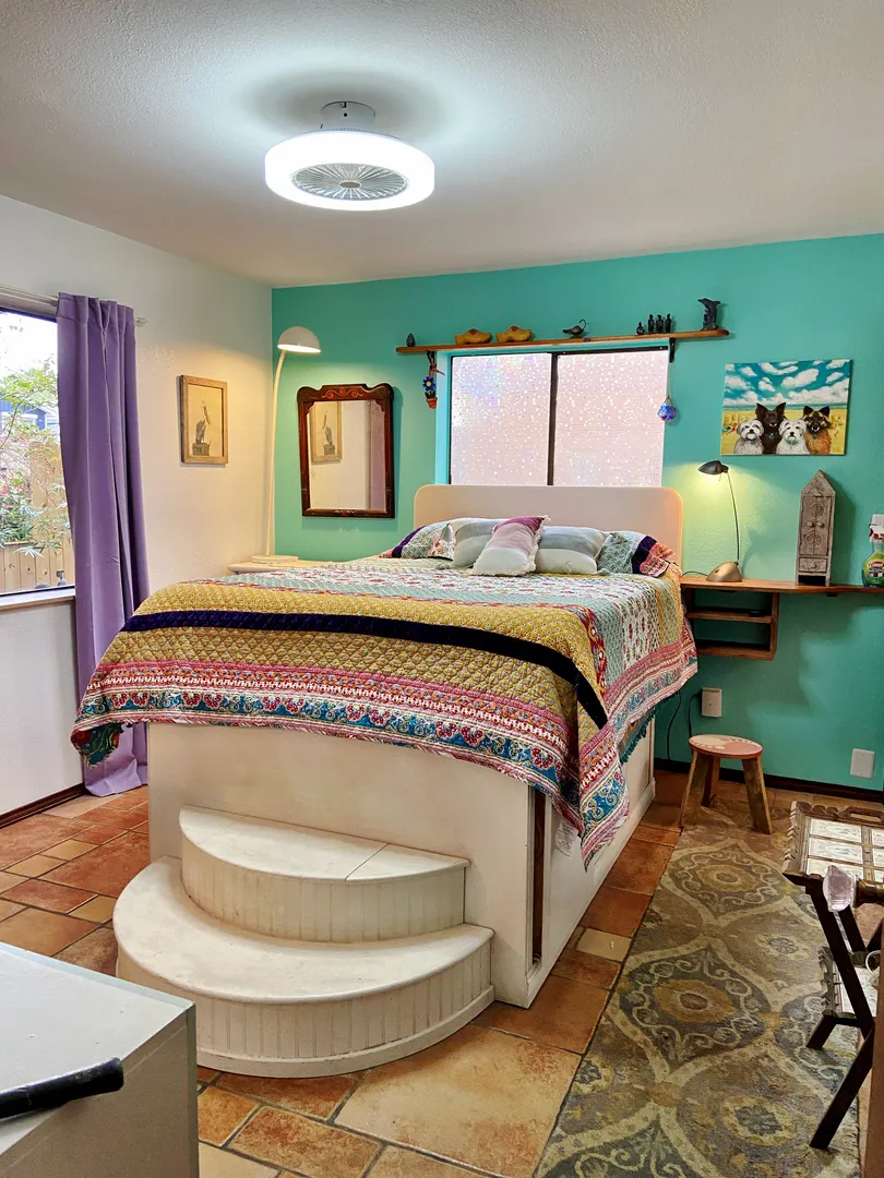 Our newly-renovated 1BD/2BA ground floor unit sleeps five - 1 Queen in BR, daybed and sofa sleeper in spacious living area, but is best for a couple and a dog or three. Full kitchen, enclosed patio area with pet door and huge dog kennel. Sandy Feet lived here for 25
